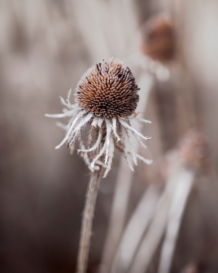 The last image for the week is of Giant Benary Zinnia seed heads. I braved the cold to snip a few stems that were left in my garden. One was so large it had bent over from the weight of the seeds. The middle stem had lost most of its seeds, but left an interesting shape. The seed head on the far right was quite a bit smaller. It was possibly from a flower late in the season. I loved that a few leaves remained. Each stem unique and interesting in it’s own way.